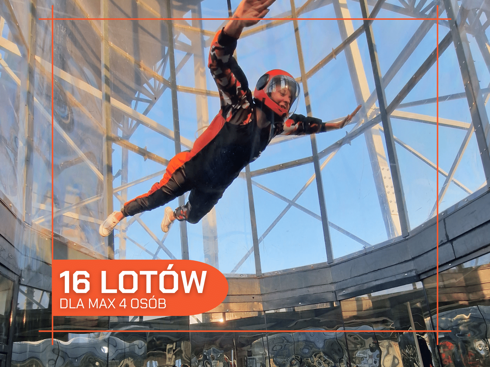 Pakiet obejmuje 16 lotów / 8 sesjI lotu w tunelu aerodynamicznym Maxfly dla maksymalnie 4 osób.(każda osoba lata pod opieką instruktora w określonej kolejności). W tunelu może latać każdy od 4 lat do 120 kg 🙂